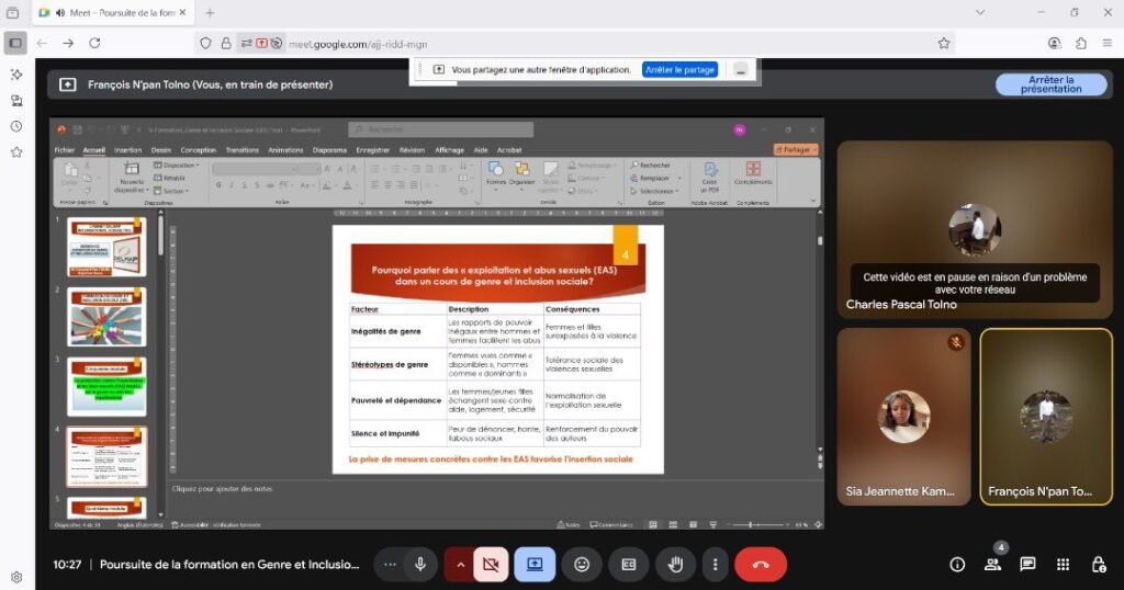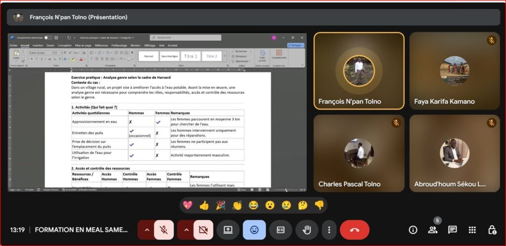 Du 10 mai au 19 juillet 2025, le Cabinet DELMAP a animé une formation sur le module Genre et Inclusion Sociale. Cette formation, axée sur les enjeux liés à la dimension genre et à l’inclusion sociale, a permis à l’expert de démontrer que le genre n’est pas une réalité biologique figée, mais une construction sociale façonnée par les normes, les pratiques culturelles et les représentations collectives. Cette perspective a offert l’opportunité de déconstruire les stéréotypes et de susciter une réflexion critique sur les rôles et attentes associés à l’identité de genre.